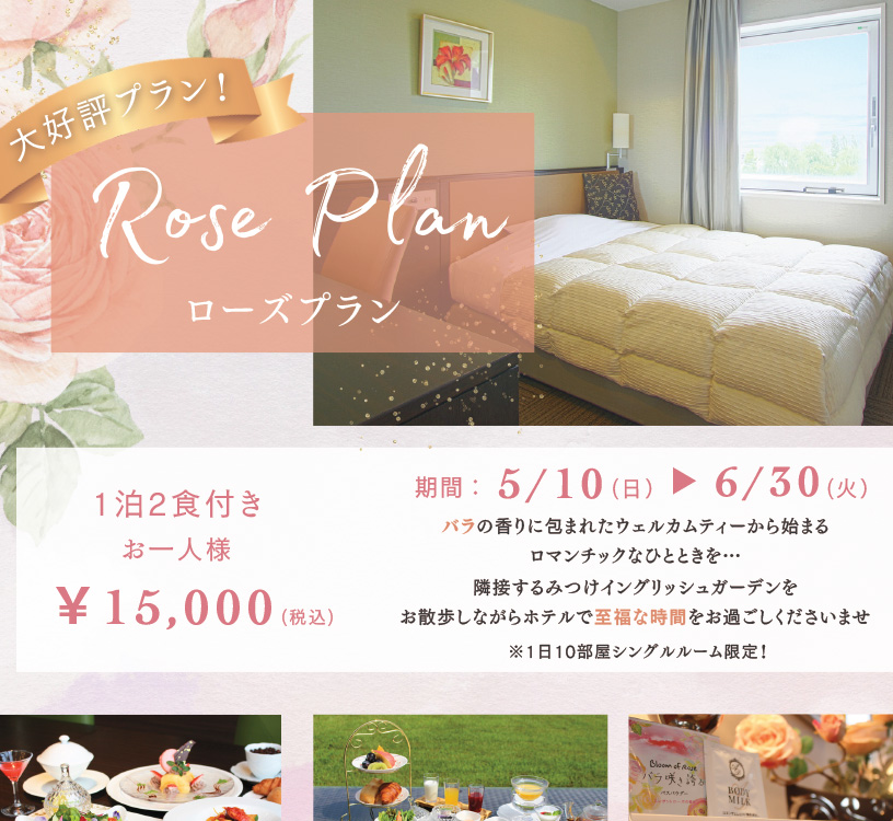 大好評プランが今年も登場!バラの時期限定の夕食・朝食が付いた特別プランです!